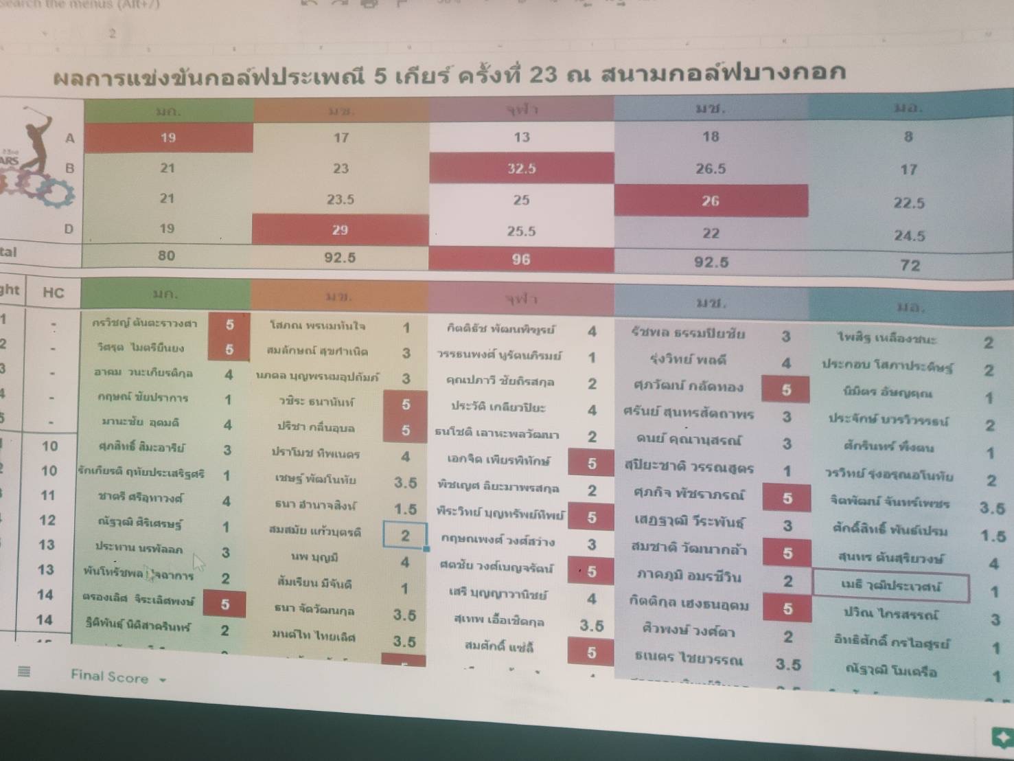 เมื่อวันเสาร์ที่ 26 มีนาคม 2565 ณ สนามกอล์ฟบางกอก